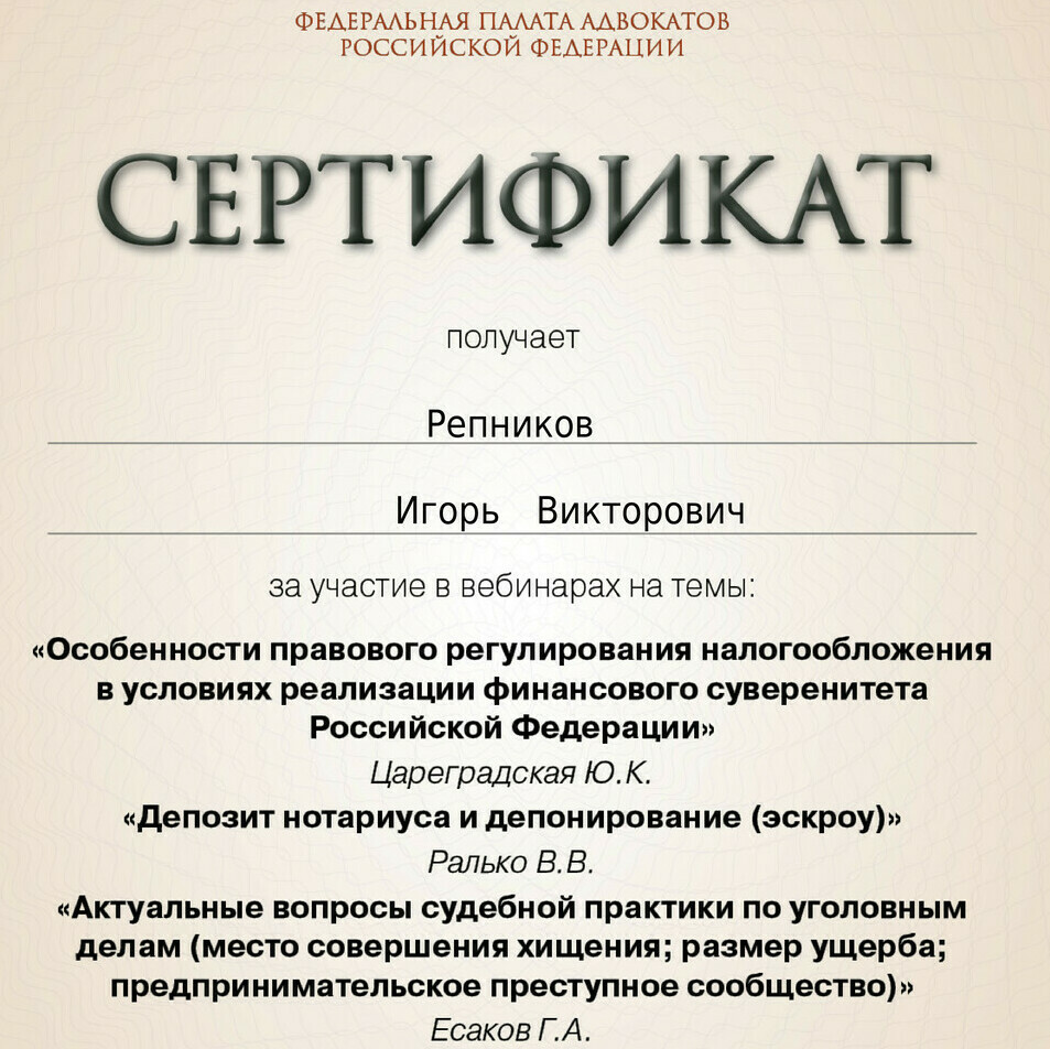 Тщательно отслеживаю изменения законодательства и постоянно совершенствую свою деятельность, расширяя спектр услуг согласно актуальным требованиям рынка. При этом основа моей работы – обеспечение всестороннего подхода к обслуживанию, находя эффективные способы решения поставленных доверителями задач!